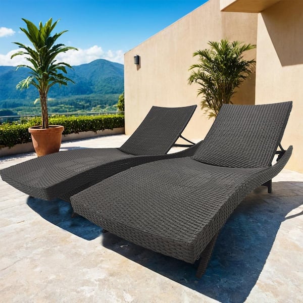 2-Piece Dark Brown Wicker Outdoor Patio Chaise Lounge Chair with 4-Position Adjustable Backrest