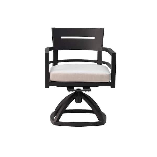2-Piece Ember Black Aluminum Patio Outdoor Rocking Chair with Beige Cushions