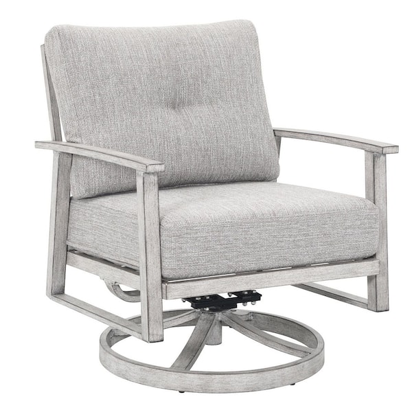 2 Pieces Aluminum Outdoor Rocking Chair, Patio Swivel Lounge Chair with Light Gray Cushion for Backyard Deck Garden