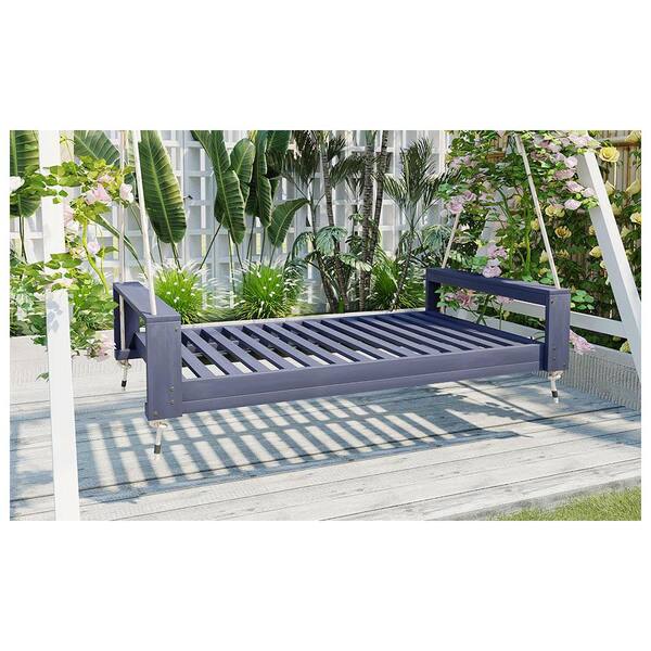 2-Seat Gray Wooden Twin Size Outdoor Patio Swing Hanging Chair with 98 in. Hemp ropes and 2-Rope Clips