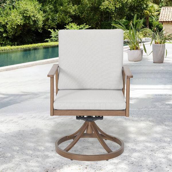24.8 in. Aluminum Outdoor Dining Chair with Beige Cushion and Back Pad, Patio Armchair for Backyard (2 pack)