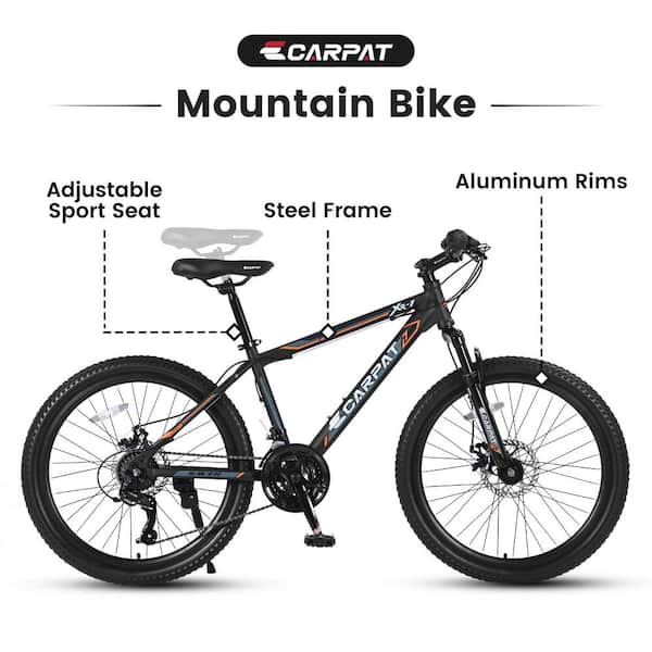 24 in. Mountain Bike Bicycle Aluminium Frame Bike Shimano 21-Speed with Disc Brake for Adults in Black