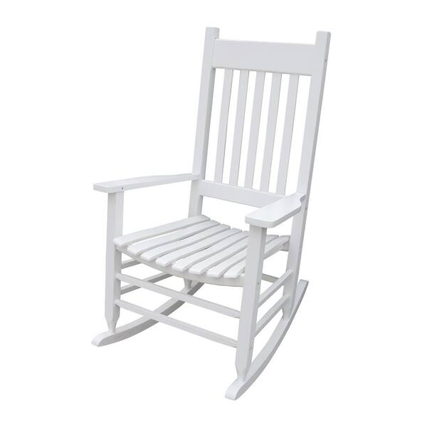 24 in. Width x 33 in. Depth x 45 in. Height White Wooden Porch Outdoor Rocking Chair for Patio, Garden, Balcony