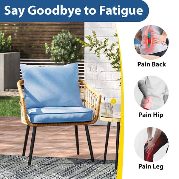 24 in. x 24 in. 4-Pieces Outdoor Dining Chair Cushion with Back in Light Blue