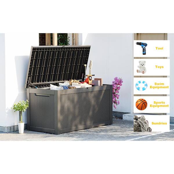 260 Gal. Black Resin Deck Box Waterproof for Large Patio Storage for Patio Furniture, Gardening Tools, Pool and Sports