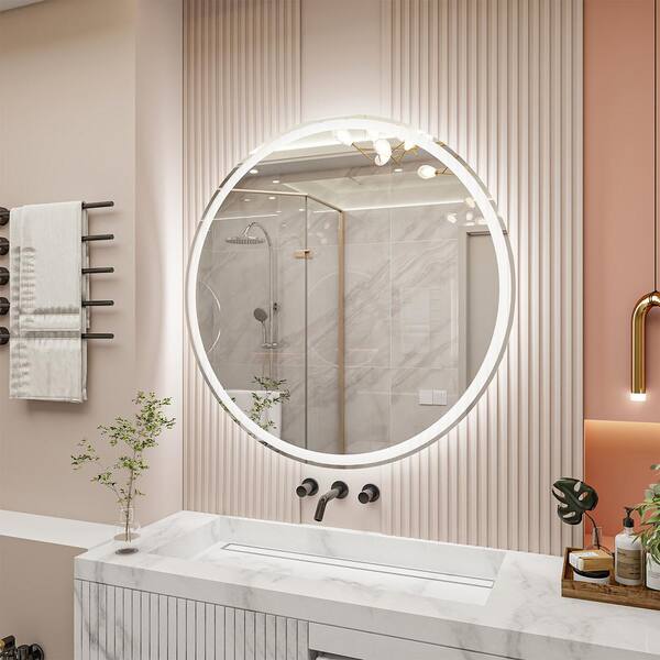 28 in. W x 28 in. H Round Frameless Wall Mounted Bathroom Vanity Mirror Waterproof Smart Touch Button