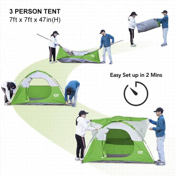3-Person Dome Tents for Camping, Waterproof Windproof Backpacking Tent, Lightweight Tents with 3 Mesh Windows (Green)
