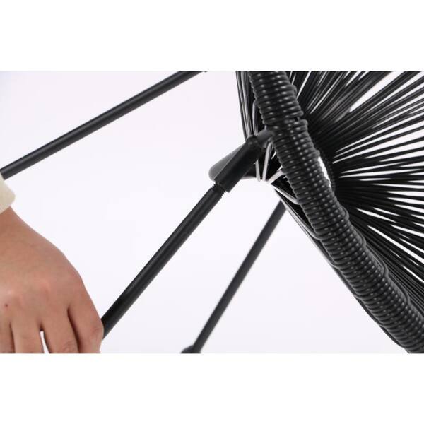 3 Piece Black Metal PE Rattan Outdoor Patio Conversation Set with Side Table Flexible Rope Furniture with Coffee Table