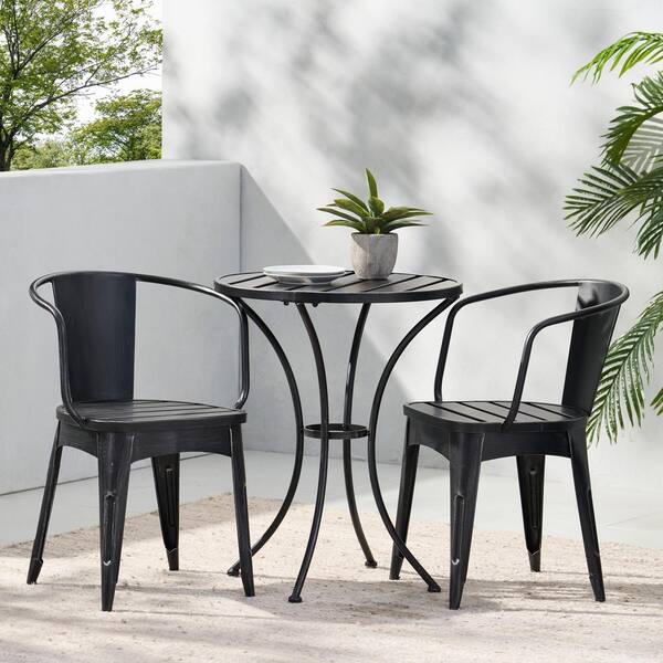 3-Piece Black Metal Patio Conversation Set with Round Coffee Table for Porch, Balcony, Poolside