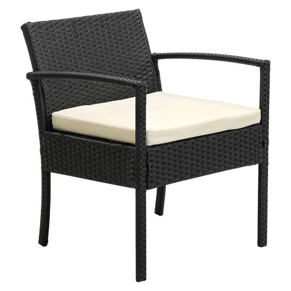 3-Piece Black PE Wicker Patio Outdoor Conversation Set with Beige Cushions and Glass Coffee Table