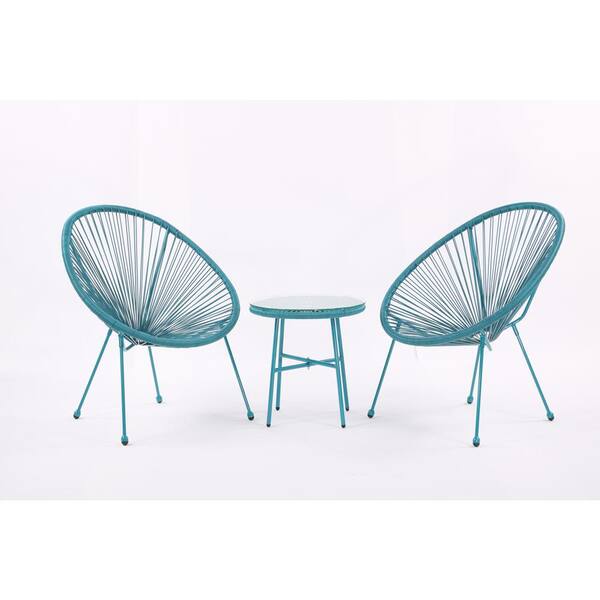 3 Piece Blue Metal Rattan Patio Conversation Set with Coffee Table for Garden, Backyard, Balcony or Poolside