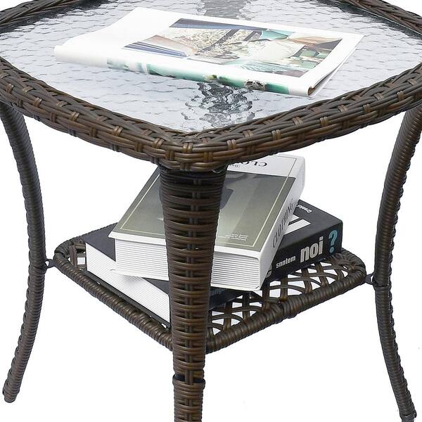 3-Piece Brown Wicker Outdoor Rocking Chair with Navy Blue Cushion, 360-Degree Swivel Rocking Chairs and Coffee Table