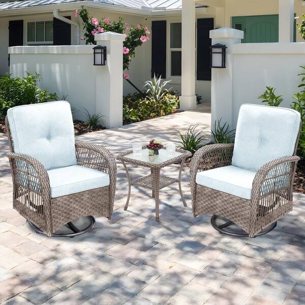 3-Piece Brown Wicker Patio Outdoor Bistro Sets with Aqua Blue Cushions and 1 Coffee Table
