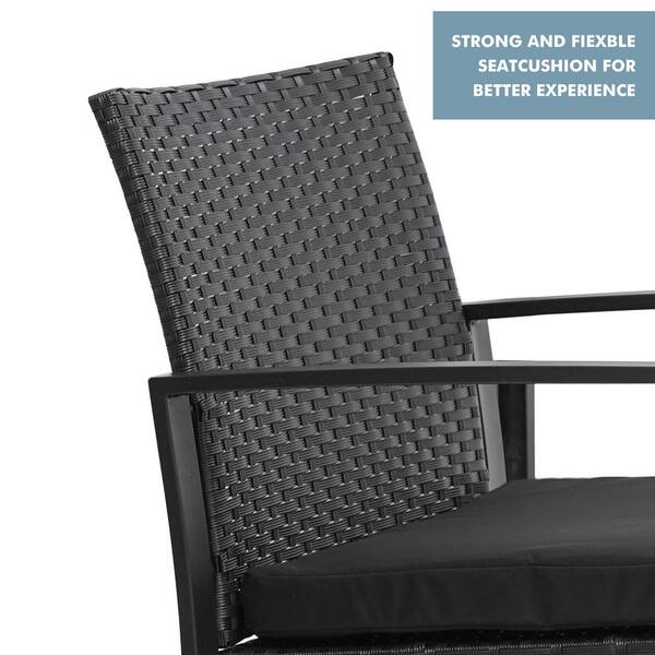 3 Pieces Black Wicker Rattan Patio Outdoor Conversation Sets withBlack Cushions Coffee Table for Yard and Bistro