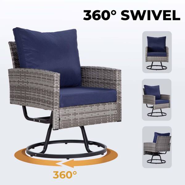 3 Pieces Grey Wicker Patio Conversation Set Sofa set with Blue Cushions and 1 Coffee Table