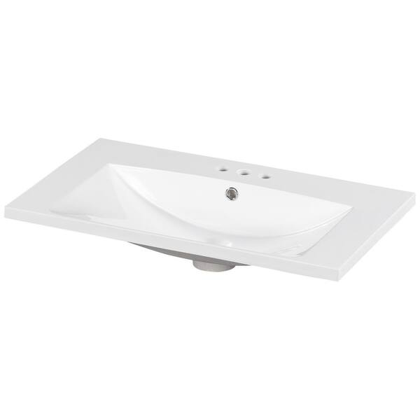 30 in. Drop-in Resin Bathroom Sink in White with 3-Faucet Holes