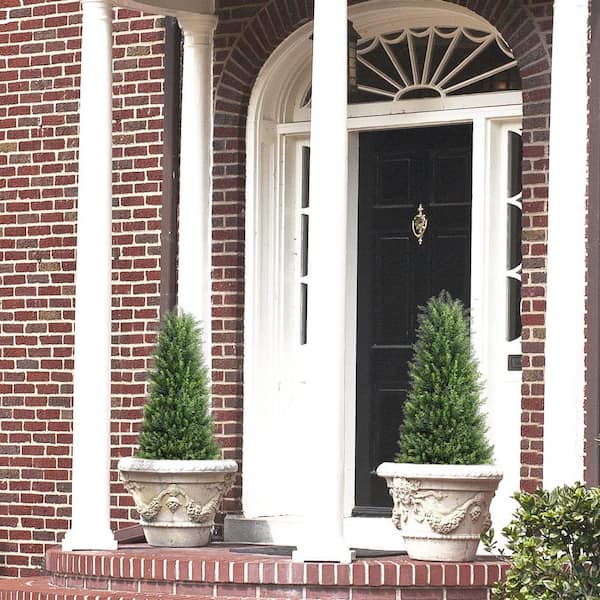 35.4 in. Artificial Topiary Tower Tree, Faux Grass Plants Set of 2