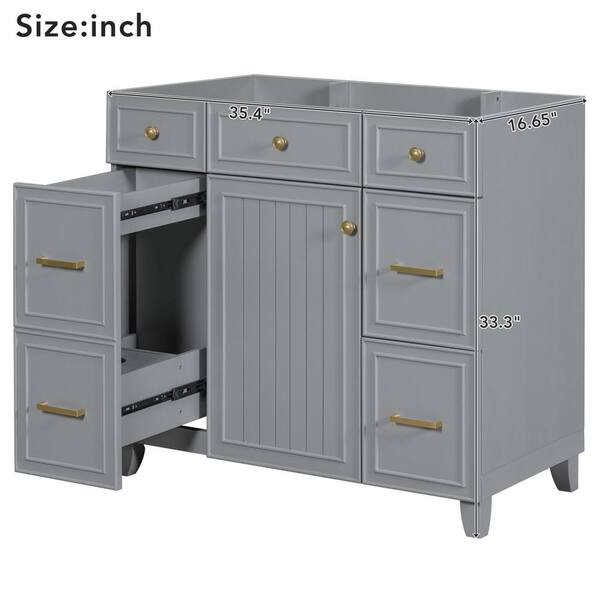 35.4 in. W x 16.6 in. D x 33.3 in. H Bath Vanity Cabinet without Top in Gray with 1-Connected Drawer