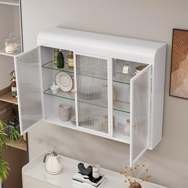 35.45 in. W x 7.87 in. D x 27.55 in. H Bathroom Storage Wall Cabinet in White with 3-Doors