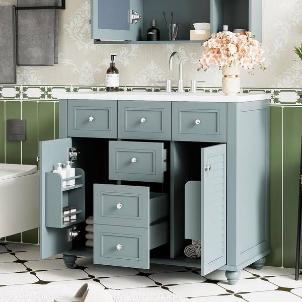 36 in. W x 18 in. D x 34 in. H Single Sink Bath Vanity in Gray Blue with White Resin Top and 2-Drawers