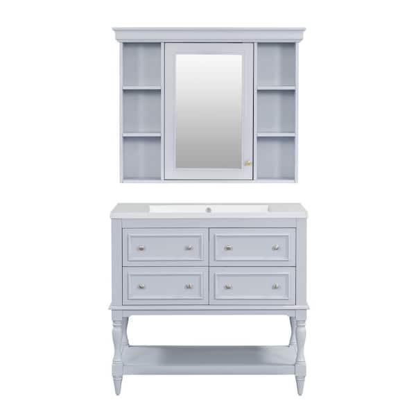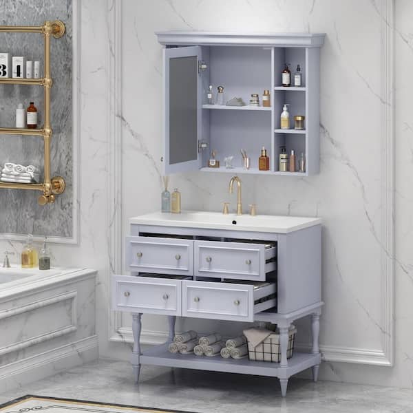 36 in. W x 18 in. D x 34 in. H Single Sink Freestanding Bath Vanity in Blue with White Resin Top and Blue Mirror Cabinet