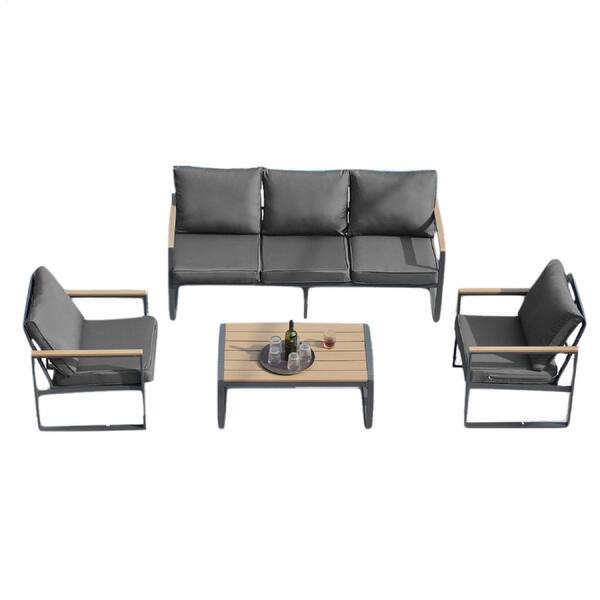 4-Piece Aluminum Patio Conversation Set with Gray Cushions and Coffee Table for Backyard, Porch and Balcony