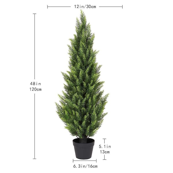 4 ft. Artificial Topiary Cedar Trees with Potted Faux Shrubs Plants for Long Lasting (Set of 2)