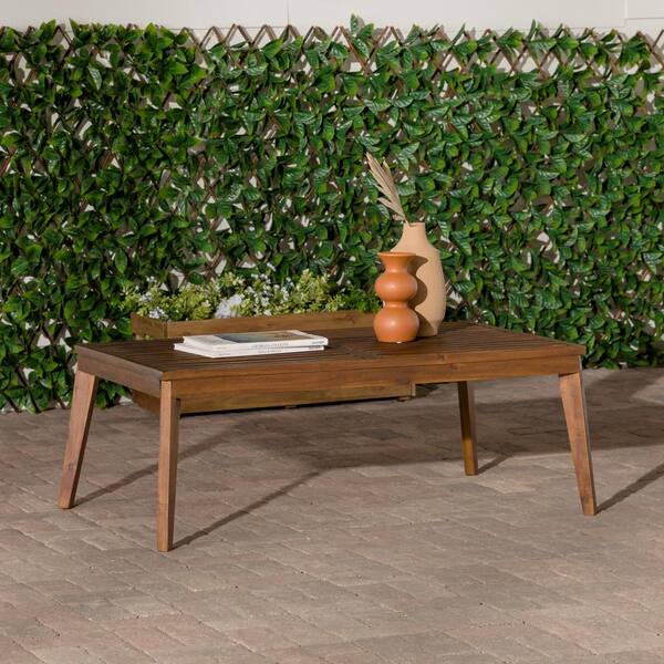 40.38 in. W x 25.75 in. D x 14.75 in. H Dark Brown Modern Slat-Top Acacia Wood Patio Coffee Table for Porch Balcony