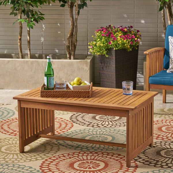 40 in. Brown Acacia Wood Outdoor Patio Coffee Table for Outdoors, Garden, Lawn, Backyard