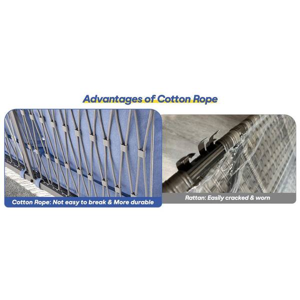 5-Piece Gray Metal Outdoor Conversation Set with Blue Cushions, Ottoman and 1 Coffee Table