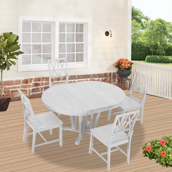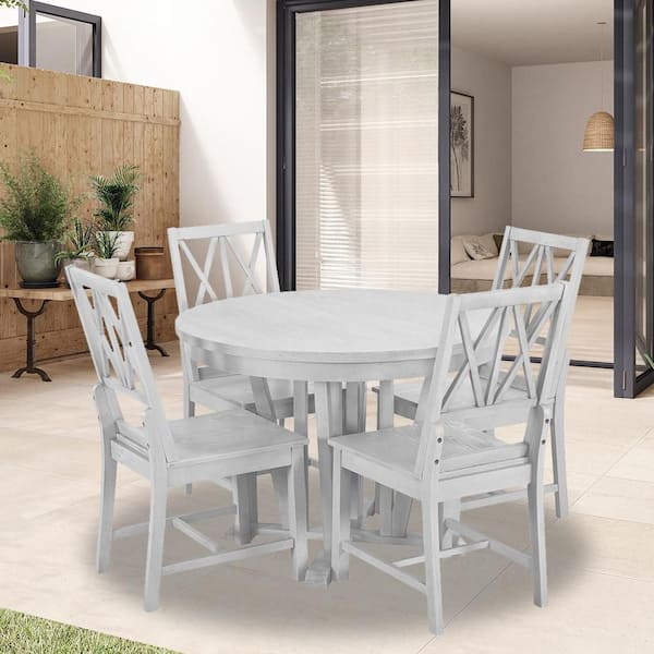 5-Piece Gray Wood Patio Outdoor Dining Table Set with 4 Cross Back Dining Chairs