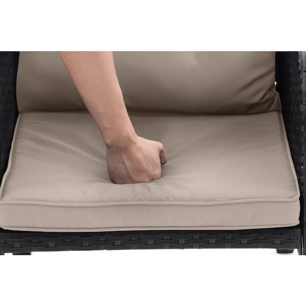 5 Piece Grey Metal Outdoor Patio Conversation Set with Armrest, Dust Grey Cushions, Ottomans, Storage Coffee Table