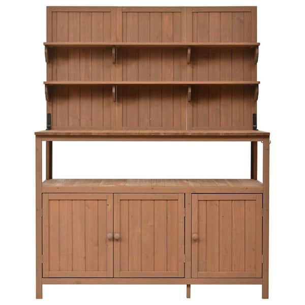 50.2 in. W x 65.4 in. H Brown Garden Potting Bench Table with 2 Shelves, 2 Cabinets, 3 Side Hooks