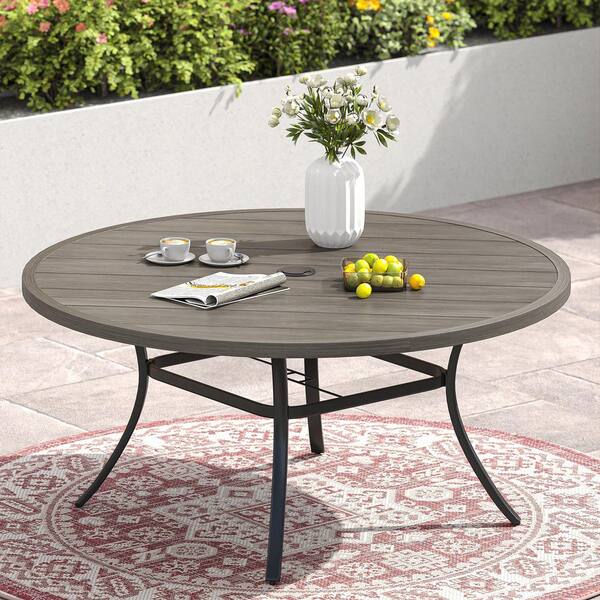 53 in. Round Tabletop Metal Outdoor Dining Table, Patio Table with Umbrella Hole for Garden Backyard Lawn, Gray