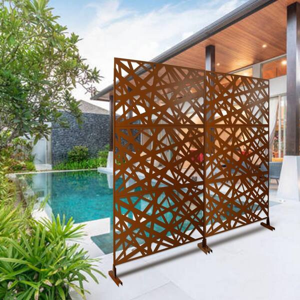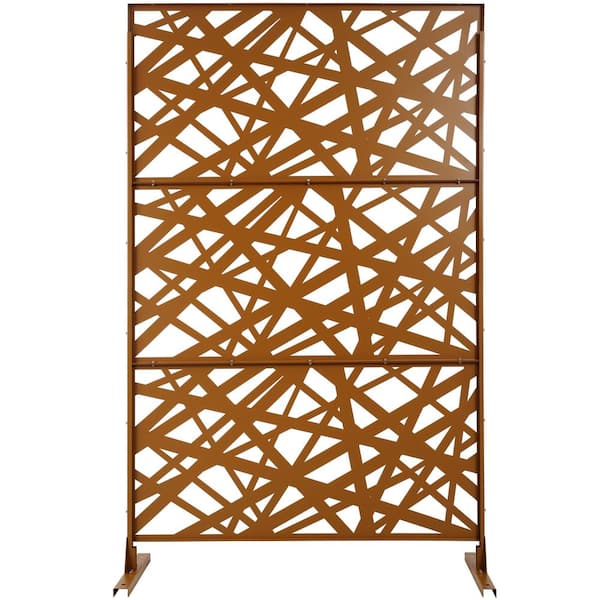 6.3 ft. H x 4 ft. W Brown Metal Privacy Screen Freestanding Decorative Privacy Fence Panels for Deck (3-Panels)