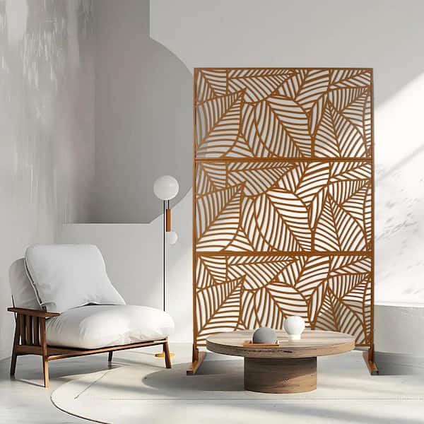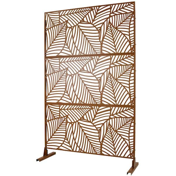 6.3 ft. x 4 ft. Outdoor Steel Freestanding Decorative Privacy Screen, Fence Panels for Deck Balcony Lawn Garden, Brown