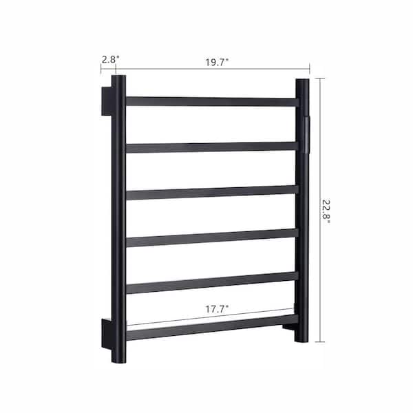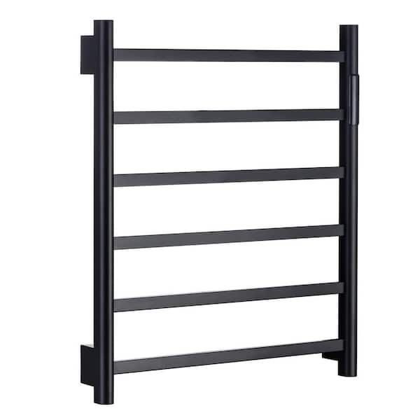 6-Bar Plug-in/Hardwired Wall Mounted Electric Towel Warmer Rack in Matte Black with Timer Waterproof