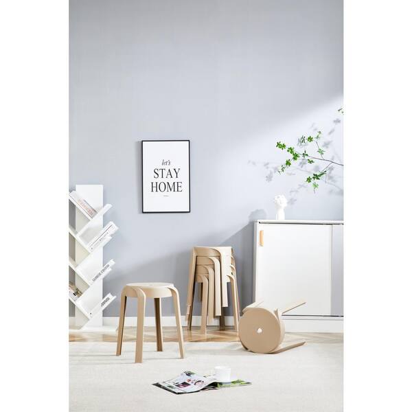 6-Piece Beige Plastic Round Outdoor Bar Stools for Home, Office, School Classroom