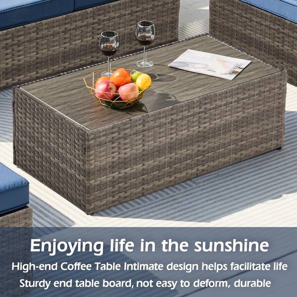 6-Piece Gray Wicker Outdoor Patio Sectional Sofa Conversation Set with Light Blue Cushions, 1 Side Table and 2 Ottomans