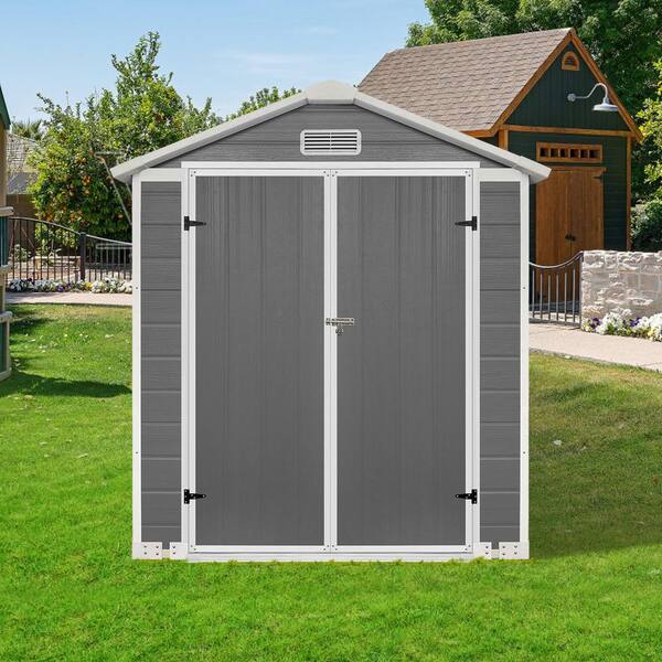 6 ft. W x 6 ft. Gray Outdoor Plastic Resin Storage Shed with Floor and Lockable Door for Patio (36 sq. ft. )