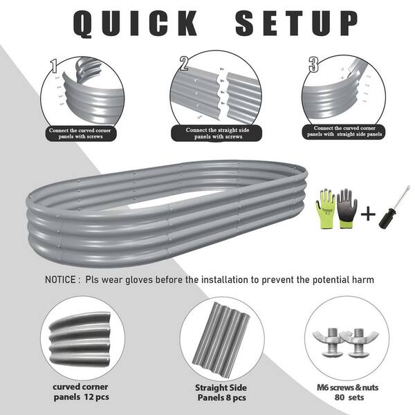 6 ft. x 3 ft. x 1 ft. Metal Oval Round Raised Garden Bed, Planter Box for Vegetables, Flowers in Light Gray (Set of 2)