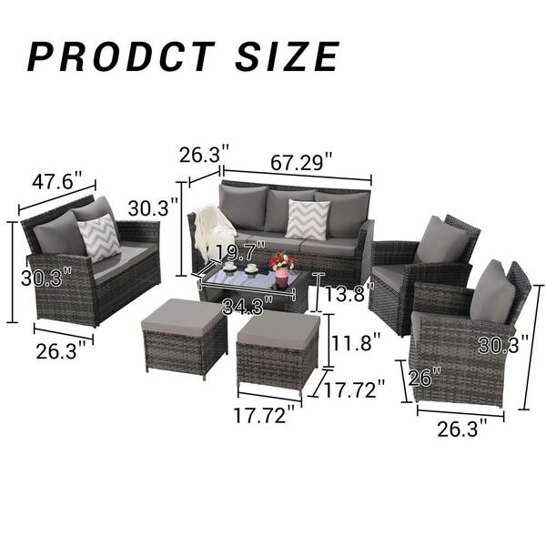 7-Piece Gray Wicker Outdoor Sectional Set with Dark Gray Cushions
