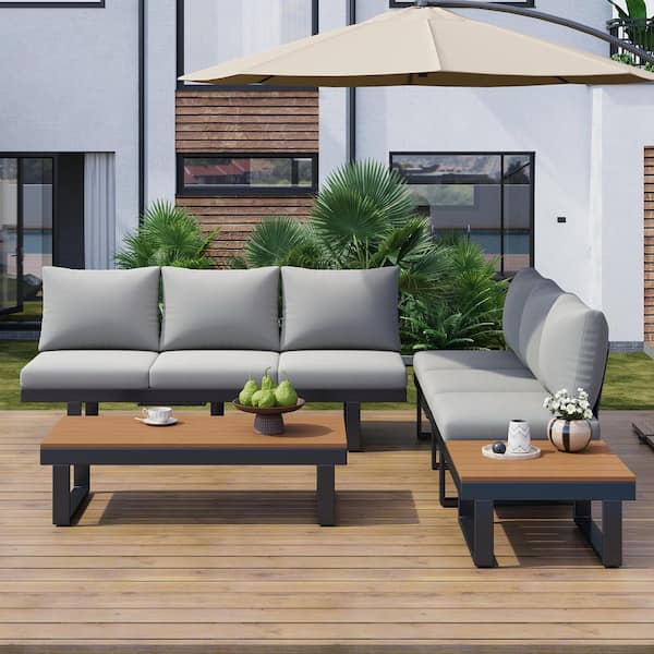 7-Piece Metal Patio Conversation Set with Gray Cushions and Coffee Table for Backyard