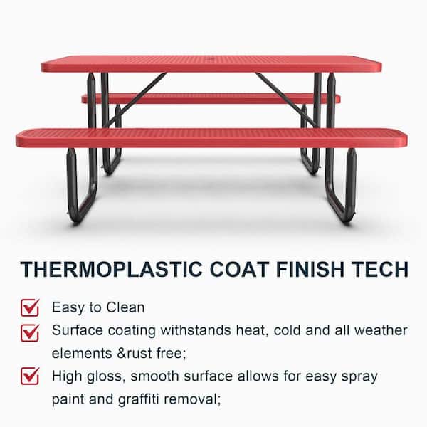 72 in. Red Expanded Metal Rectangular Picnic Table with Umbrella Hole