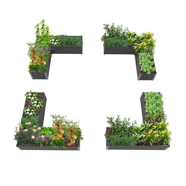 74 in. x 74 in. x 18 in. Gray Metal L-Shaped Outdoor Galvanized Raised Garden Beds, Planter Box for Planting (4-Pack)