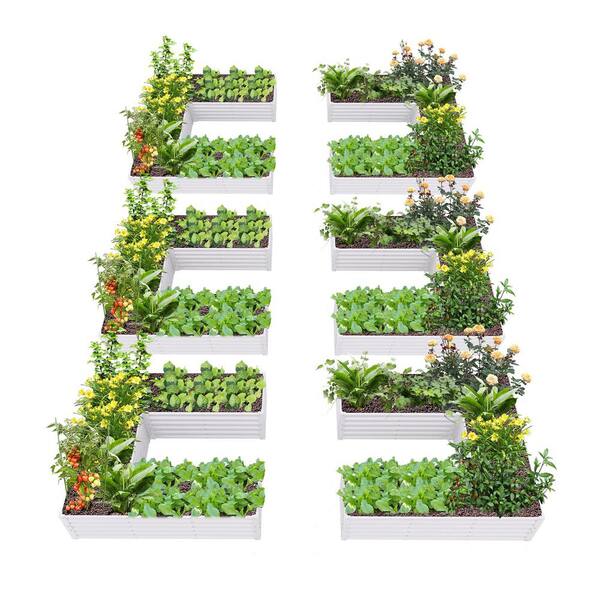74 in. x 74 in. x 18 in. White Metal U-Shaped Outdoor Galvanized Raised Garden Beds, Planter Box for Planting (6-Pack)