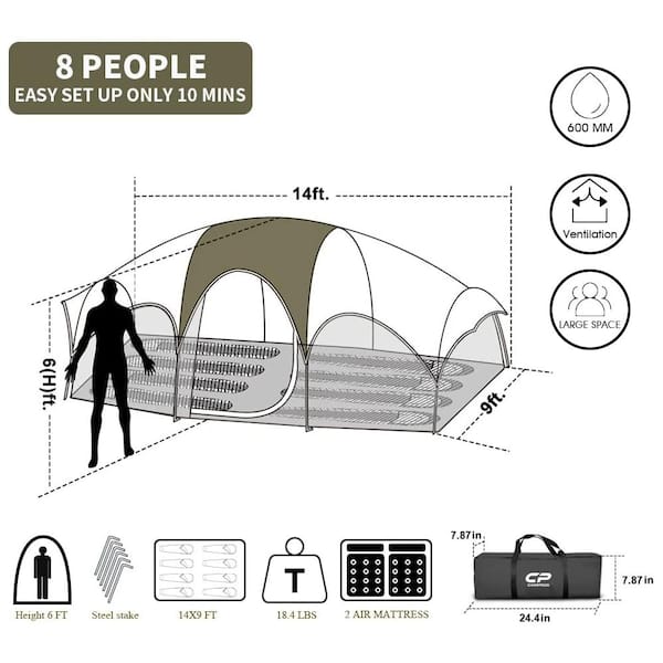 8-Person Camping Tents, Weather Resistant Family Tent, Divided Curtain for Separated Room with Carry Bag(‎‎‎‎Olive)