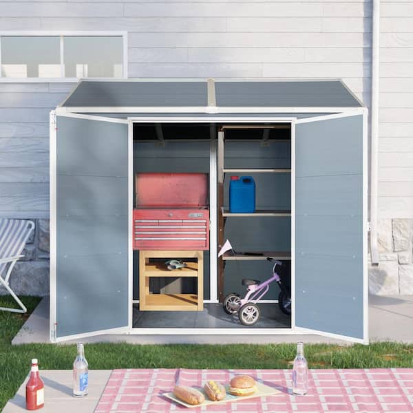 8 ft. W x 4 ft. D Gray Outdoor Storage Resin Shed with Two-Window, Double-Door, Plastic Shed with Floor (32 sq. ft. )
