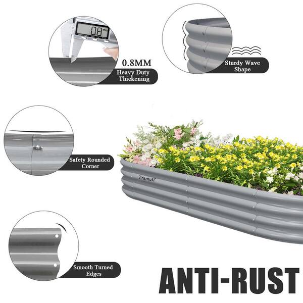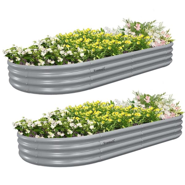 8 ft. x 4 ft. x 1 ft. Light Gray Outdoor Metal Raised Garden Bed, Planter Box for Vegetables,Flowers Set of 2