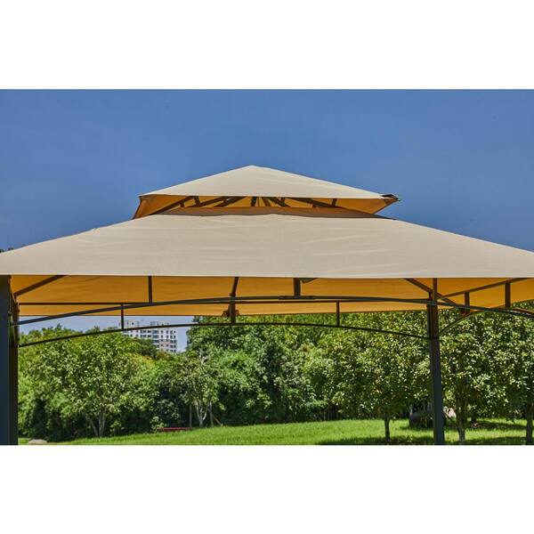 8 ft. x 5 ft. Grill Gazebo 2-Tier BBQ Gazebo Shelter for Patio, Outdoor Grill in Beige